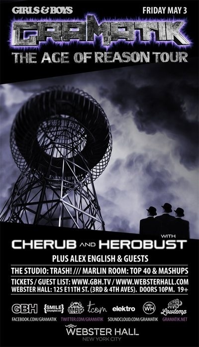 Join us Friday night in the heart of the East Village to see Gramatik throw down his dynamic mixture of Funk, Jazz, Glitch-Hop, Dubstep and Hip-Hop as he fuses together a new dimension of 50’s and 60’s Blues era in New York City at Webster Hall on Friday, May 3. He’s also playing the following night at the Upstate Concert Hall in Albany, New York. And to start the night off right, there will be opening sets by HeRobust’s hip-hop inspired bass beats and Cherub — a sexy, avante garde, electro-pop duo that is known as “the dance love-child of 80’s funk and pop-music from the future”. Both of these up-and-coming artists are worth arriving early to see as they set the tone for an incredibly vibrant show.